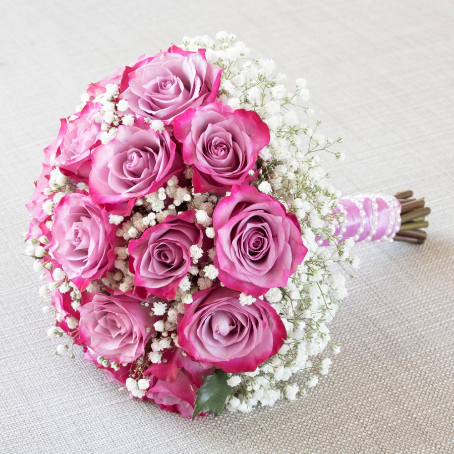 Our purple roses bouquet is a combination of all good feelings that some bride has to express. It's a simple mixture of fresh roses with a bunch of gypsophila flowers that is a perfect match for every type of wedding!